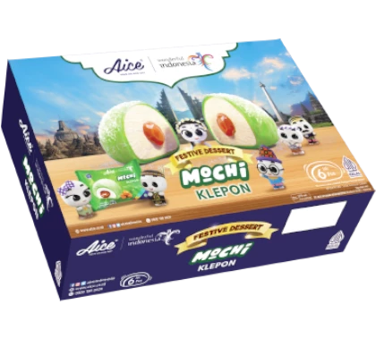 Pertama di Indonesia, kelembutan mochi Klepon membalut es krim vanilla dengan Gula merah dan taburan kelapa asli dalam kemasan Pack 6's yang pas untuk dikonsumsi bersama keluarga